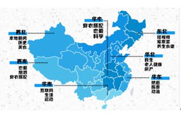 阅读倾向时间性、地域性鲜明 在个性化阅读地图中,东北、华北、华中、华东、西北、西南、华南等区域用户关注的话题各不相同,但恋爱是多个区域共同关注的话题。