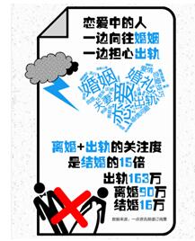 同时,离婚和出轨也是国民情感图谱中不容忽视的一部分。伴随王宝强离婚大战成年度热点,出轨话题热度高涨。数据显示,离婚+出轨的关注度是结婚的15倍,其中,订阅出轨的用户有163万,离婚90万,结婚16万。