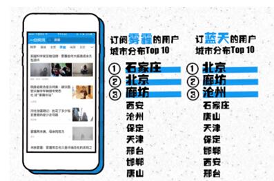 京津冀网友更关注雾霾、渴望蓝天 冬季来临,网友对雾霾的关注度也随之增强。2016年底,北京雾霾红色警报开启了网友的雾霾刷屏模式。从地域上可见,石家庄、北京、廊坊位列订阅雾霾的用户城市三甲,而订阅蓝天的用户城市前三名则为北京、廊坊、沧州。可见京津冀网友对雾霾的关心和对蓝天的渴望。同时,在PM2.5背后,用户对空气净化器、口罩的需求也随之上涨。