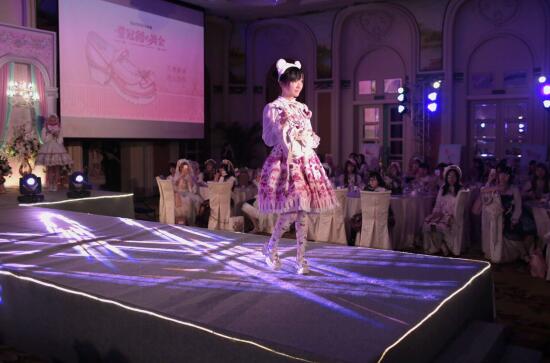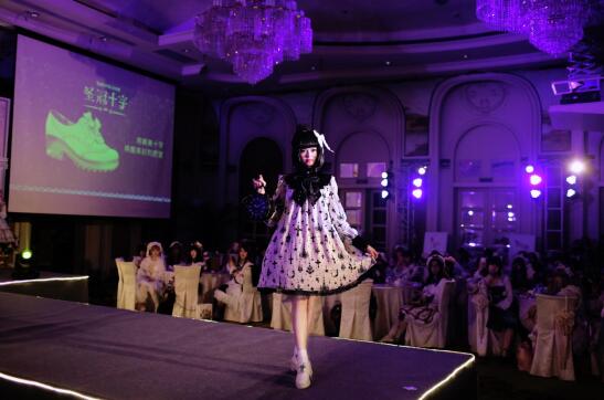 天美意Lolita胶囊系列新品发布会于3月5日下午两点在广州富力丽思卡尔顿酒店举办。美轮美奂的洛可可雕花、浪漫缤纷的水晶吊灯、法式精致的古典花台……让人恍若置身华美璀璨得无可挑剔的宫殿里,在温柔粉紫色灯光色彩交相渲染下,十位公主般的模特鱼贯而出,以优雅的姿态演绎十款鞋履的曼妙华丽……