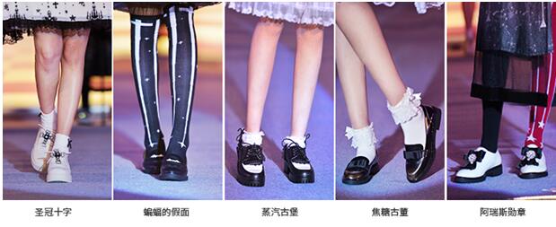 “圣冠十字”:精美可摘取十字架,厚底增高,布洛克花纹让整款鞋的设计包涵着梦幻般的华丽; “蝙蝠的假面”:图案象征着独一无二的爱,乐福鞋型融合硬朗的配色,个性又勇敢; “蒸汽古堡”:金属机械感mix铆钉蕾丝,厚底增高搭配弧度感强的鞋型,带着朋克与性感向你袭来! 焦糖古董:焦糖色搭配擦色设计,简约乐福鞋加上蝴蝶结点缀,梦幻至极。穿上它,也许会有一阵浓郁的焦糖香味飘来; “阿瑞斯勋章”:战神阿瑞斯是勇敢的象征,该鞋以白色作为主色调设计,实穿的简约鞋型,可替换的勋章和蝴蝶结配饰增加华丽感,穿上它,拥有爱情和勇气!