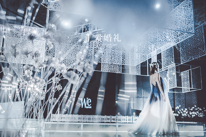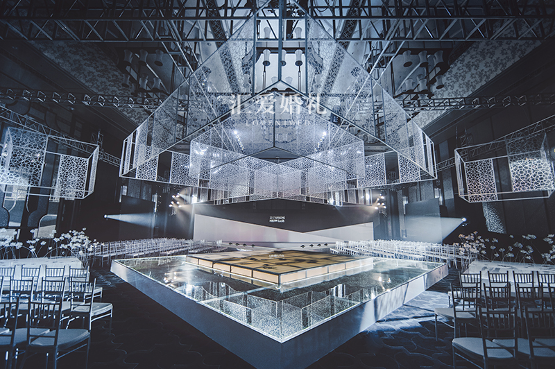 主舞台设计上,以上下呼应的简约几何体块为主结构进行对称设计,取天地相对之意,强调视觉的统一与和谐。 T台的设计上,打破传统的T型、S型、U型通道设计,采用包裹性T台和中心表演台相结合的手法。将原来的舞台视觉从一侧调整为中心,凸显空间感与视觉流畅性。 水晶玻璃T台下,数千朵玲珑细致,洁白无瑕的满天星,松松散散聚在一起,细小轻盈,宛若无际夜空中的点点繁星,似雾般朦胧,极具婉约、雅素之美。亦如花语本身所具有的气质,既不夺人风采,又能适时表现出自己的清雅可爱,含蓄恰到好处。 素 无镂空,不性感。追寻摩洛哥时代的花纹印记,我们用简单的几何线条,勾勒描绘现代的前卫与留空,至简至致。 取自摩洛哥建筑风格中的镂空花纹墙面,将其纹理简洁化,与直线几何结构相辅相成,以轻盈通透的花纹元素和简洁统一的线性元素贯穿全场,营造出柔美的几何空间。 桌花-延续整个宴会空间简洁花纹与直线几何结构相辅相成的设计理念,选用朱顶白、白掌、菟葵、高山羊齿、落新妇、蝴蝶兰、小菊等细小轻盈型花材,打破传统单一的桌花布局,宴会桌面装饰不再局限于桌花本身,而是尽可能与周遭的元素产生关联,从而联合组成更“开阔”的餐桌视觉。 椅背-利用雾面纸手工制成层叠效果,营造出雾面感,整体造型与整个桌花结构材质吻合,传递出通透轻盈的质感。 太极动而生阳,动极而静,静而生阴。静极复动。一动一静,互为其根...... 一场完美的宴会空间,由内而外,除却视觉的静观,还应留有可以令人身临其境多方位欣赏的动感。行至水穷,坐看云起,流动的线条,刚柔并济,满足现代化都市所有绅士淑女们对于“穿着”的完美幻想。此次春尚发布,特意邀来WECOUTURE高级定制、RUI'Z BESPOKE、Ruby Fang三大服装定制品牌,为所有绅士淑女们献出一场全新的定制体验。 还记得早前詹妮弗·洛佩兹在《美国偶像》上,一袭白裙献唱《Feel the light》,现场利用3D投影技术,将五彩灯光打照在为她专门定制的巨型白裙上,如梦似幻,堪称美偶史上最美表演。 在此次春尚发布现场,伴随着同样的音乐,在3D全息投影技术下,Claire Man珠宝 以爱妻之名,璀璨绽放。更有广州富力丽思卡尔顿酒店新任行政总厨莱博尔(Thomas Laberer)带领饼房厨师团队,发挥无穷创意,为所有来宾们献上的精美甜点。 为时尚立名,为潮流定义,汇集华南最强婚礼品牌阵容,聚焦婚礼流行最新趋势,一场全新的视觉与味觉盛宴,尽在汇爱婚礼2017高级定制春尚发布。 |