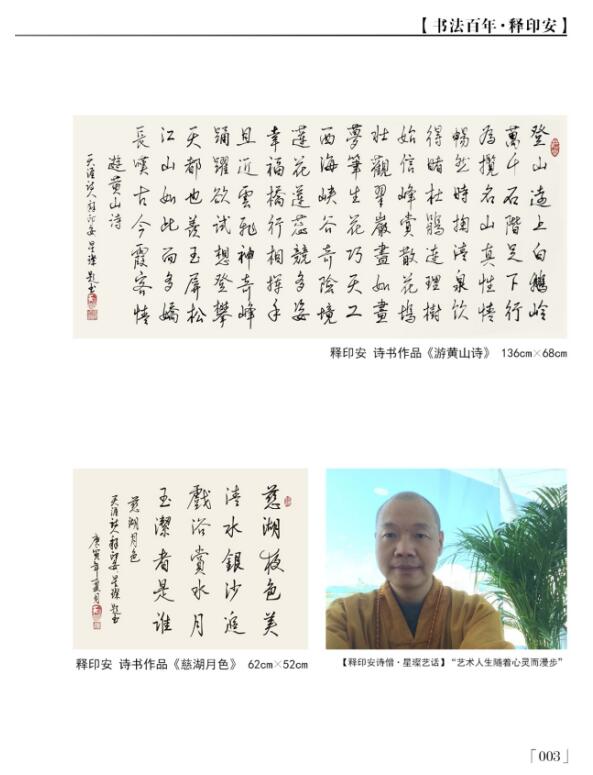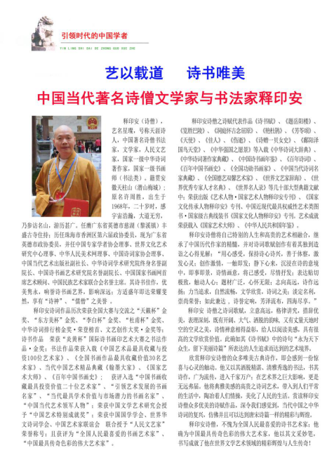 释印安(诗僧),艺名星璨,号称天涯诗人,中国著名诗僧书法家,文学家,人民文艺家,国家一级中华诗词著作家,国家一级书画师(书法类),中国艺术特别成就奖荣获者。籍贯安徽天柱山(潜山梅城); 原名许周胜,出生于一九六八年,二十岁时,感宇宙浩瀚,大道无穷,乃参访名山,游历甚广。任膺广东省英德市慈湖(黎溪镇)丰盛古寺住持,历任珠海市香洲区第六届政协委员,现为广东省英德市政协委员,并任中国专家学者协会理事、国家权威杂志《科技中国》专家委员会委员、世界文化艺术研究中心理事、中国诗词家协会理事、中国当代艺术出版社副社长、中华诗词学术研究院终身名誉副院长、中国诗书画艺术研究院名誉副院长、中国国家书画网首席艺术顾问、中国民族艺术家联合会名誉主席、艺联网特聘艺术家。其诗书佳作,优美隽永,响誉诗书画艺界,影响深远;方适盛年即达荣耀斐然,享有“诗神”、“儒僧”之美誉;艺术成就荣获载入《国家艺术大师》、《中华人民共和国年鉴》。
