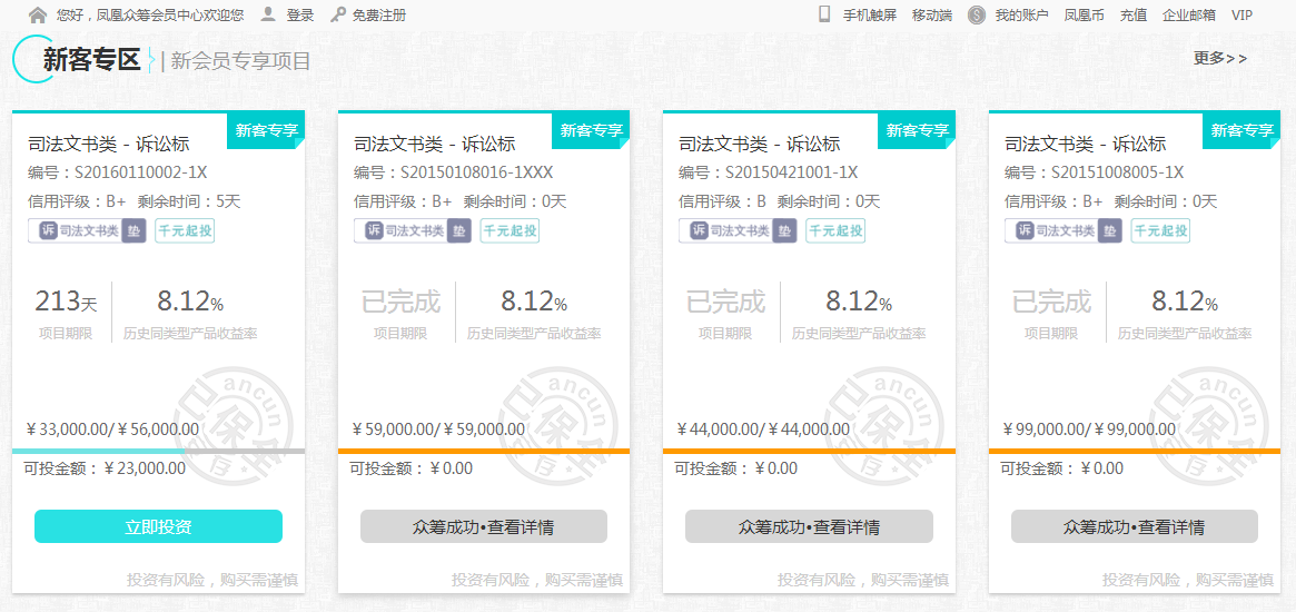 在互联网金融领域,无忧存证的名字并不陌生,早在去年2月8日正式上线之时,就诞生了首份P2G平台公证书,引起了业界轰动。目前,已被最高院在内的全国750多个地区的法院及近200家互联网金融平台引入使用。 此次凤凰众筹ibank.net上线无忧存证,真正做到全方位保障用户交易安全。每位客户的线上交易电子数据,包括主体身份、产品及交易信息、支付信息、资产凭证、合同协议等,都将生成相应的保全证书和保全号,实时同步存储至云端,实现了线上交易电子数据第三方实时保全,有效预防了存管证据不足、遭人篡改等诸多问题。投资者可在凤凰众筹ibank.net投资后直接查看或者通过登录无忧存证官网,输入保全号,查询被保全的电子数据。