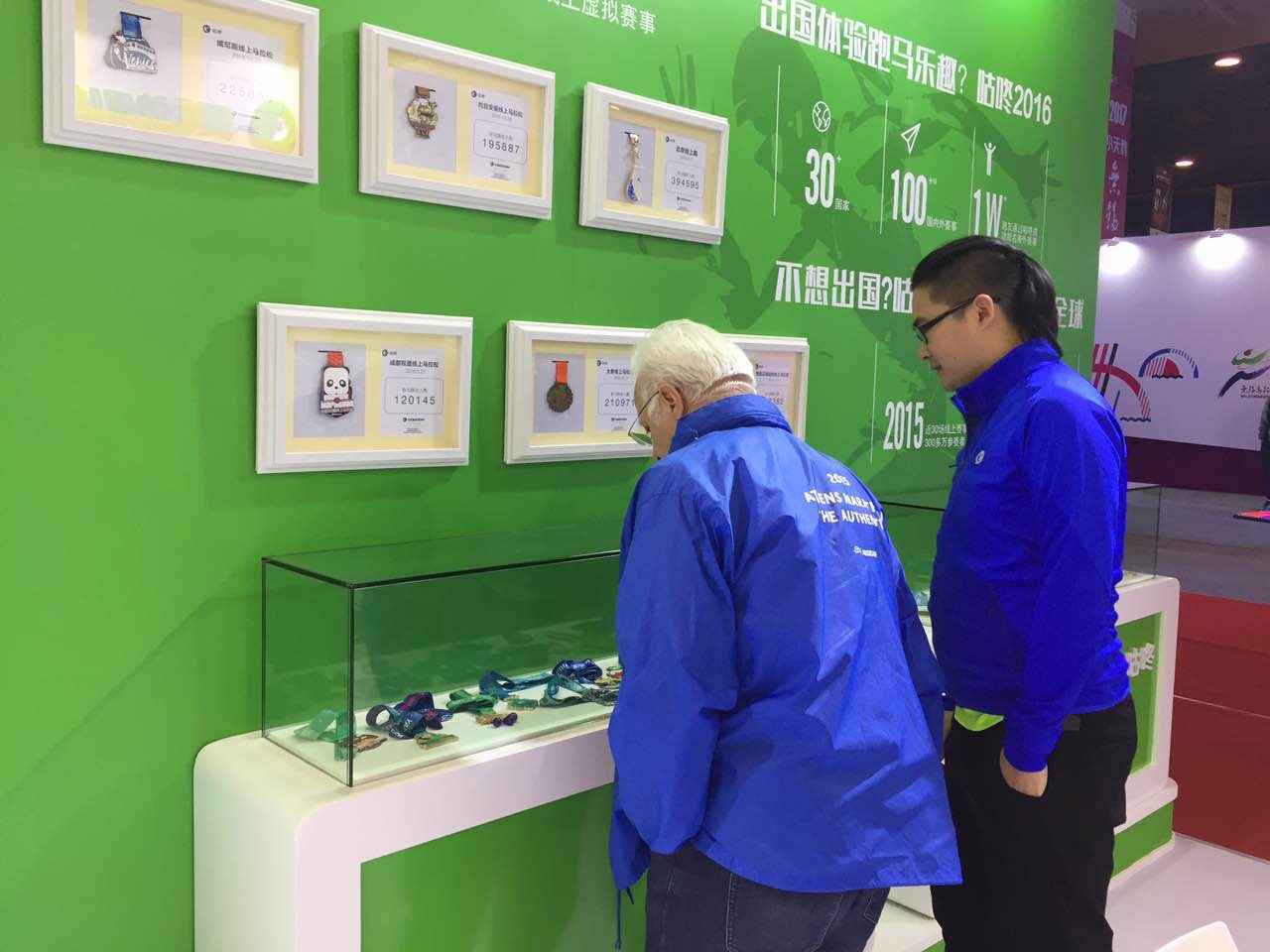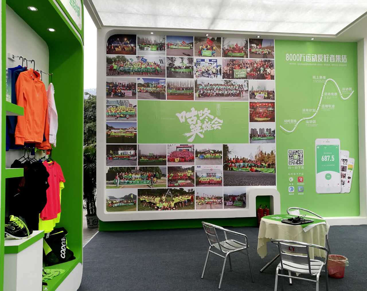 最独特的是咕咚展台的风景墙——以“咕咚英雄会”为主题的风景墙,通过征集筛选,向众多跑友真实展示了2014年以来,咕咚跑团、运动团建设的成果。据咕咚跑团负责人介绍,目前入驻咕咚的“运动团”数量已超过17.6万个,覆盖运动人口超过千万。 其中,咕咚跑团数量超过10万,骑行团数量超过3万,通过官方认证的“咕咚官方跑团”108个,以广州、上海、北京、成都、杭州、深圳、重庆、郑州、大连等一二线城市最为活跃,成员超过13万。每年线上线下开展的跑步活动超过千场,推动健康、快乐、积极向上的运动社交理念迅速走向成熟。