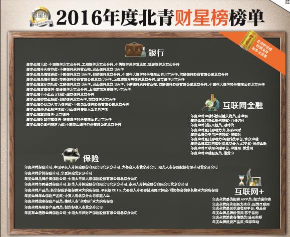 3月17日,由北京青年报主办,主题为“风雨同舟 财星10年”的2016北青财星榜颁奖典礼暨2017启动仪式在北京开幕。银客网喜获“2016年度金牌最具影响力奖”。 据了解,北青财星榜是《北京青年报》倾力打造的、一年一度的金融评选盛宴,如今已经走过了9个年头。本次大会覆盖了银行、保险、互联网金融、互联网+等四个领域,白条闪付、银客网等9家互联网金融机构获得殊荣。