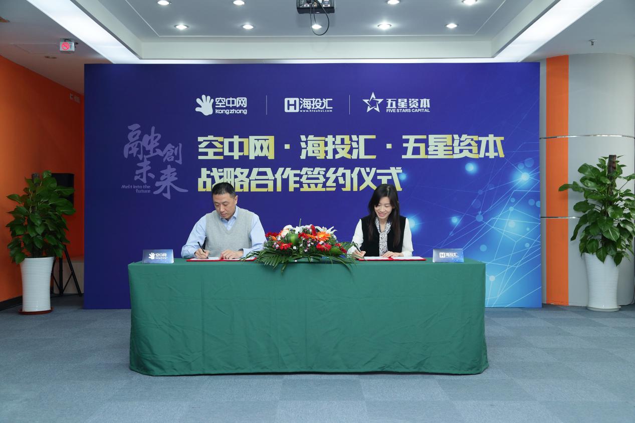 2017年3月20日下午,海投汇携手空中网与五星资本,在空中网总部腾达大厦举行战略合作签约仪式。三方本着共同打造良好品牌形象、互通有无、共同发展,就市场美誉度、会员服务质量优化与沉淀,以及活跃粉丝等方向签署了框架合作协议。