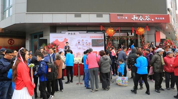 2017年3月21日,国人快餐知名品牌和合谷第100家店——草桥店盛大开业。北京和合谷餐饮管理有限公司董事长赵申、北京德茗鑫置业有限公司总经理贺红军、百福控股财务总监景慎等领导、嘉宾出席了开业庆典,现场还有不少顾客驻足观看、现场体验。