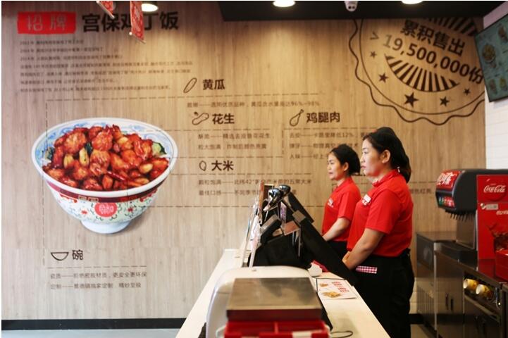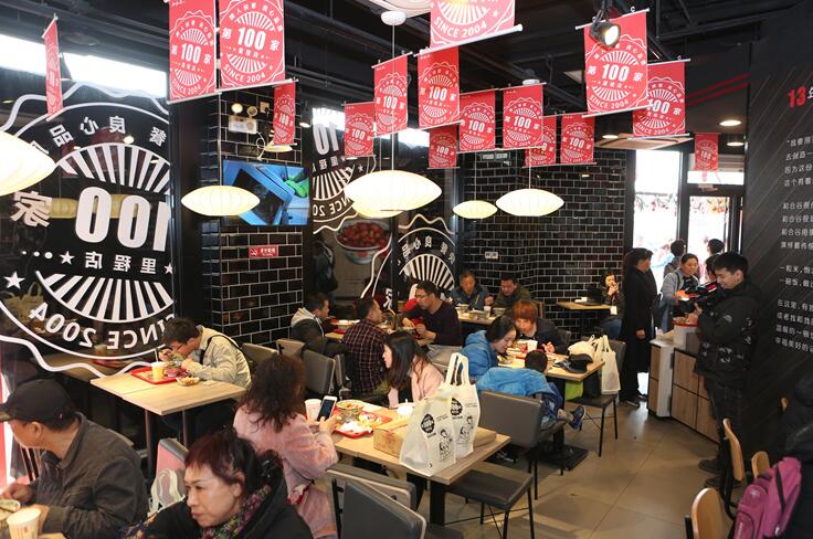 专注每一碗饭 改善百姓生活 在店庆现场,我们看到了一个“老知青”,带着对“传统饮食文化与现代餐饮技术”的崇敬之情,脚踏实地的开始了烹饪工业化探索。自品牌创立以来,赵申一直将研发的方向定在“国菜经典”上。赵申以“吃货的私心”和“品牌的匠心”开始了主打菜品的研制。单为了一个宫保鸡丁花生酥脆的问题,赵申就带着研发人员到市场上找了十几种花生,一个一个试,最终找到了最合适的花生品种和炸制保脆的方法。和合谷宫保鸡丁最终通过近一年上百次的测试,根据和合谷门店的设备、开业情况,从原料的选择,工艺的转换,食材下锅的顺序,温度的控制,赵申研发出了更适合快餐制售的大众口味的宫保鸡丁饭。自上市以来,已经累计售卖1950万份,是和合谷名副其实的冠军饭品。 草桥店作为第100家店,店内装饰也是别具风格,很有标志性。餐厅一进门就能看到前台左侧的整面墙壁是一整幅手绘图,展示了一碗诱人的宫保鸡丁饭所使用的原料:五常的大米、山东鲁花花生、景德镇瓷碗等。