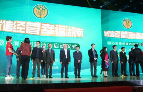 近日, 湖南省工商行政管理局、湖南省消费者委员会联合举行庆祝3·15暨“诚信经营 幸福湖南”放心消费创建活动启动仪式在长沙市圣爵菲斯酒店召开,启动会上对御泥坊、海尔、中国人寿等全省10家“消费者维权先进单位”代表进行了表彰 ,肯定其在消费者维权工作方面做出的突出贡献, 鼓励企业坚持诚信经营。省人大常委会副主任李友志, 省政府副省长谢建辉,省工商局局长李金冬出席活动,并为现场10家“消费者维权先进单位”代表颁奖。