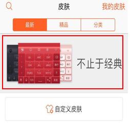 成功启用后就会出现如上图的小图标,一目了然。 红色在中国一直是红红火火喜庆的象征,代表着热情、团结等词汇,不过小编周围也有小伙伴更偏爱黑色或者灰色等沉稳大气的颜色。考虑到大家对不同颜色的偏爱,搜狗输入法手机版推出了类似“苹果红”的一系列新皮肤——“不止于经典”,这也与搜狗的不断创新的精神十分符合。点击搜狗输入法的APP,就能看到“不止于经典的”banner,轻轻一点就能看到更多颜色的选择。
