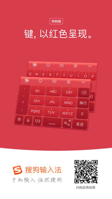前几天,小编被iphone7要出红色版的消息给刷屏了,小伙伴们纷纷自黑扬言要去买新手机壳,由此可见不久大街上就要刮起一场“红色”风暴。你是已经下定决心入手iphone7,还是默默的刷起了红色的手机壳,或者波澜不惊、一笑置之呢? 喜欢红色但不愿意盲追热点千篇一律?没关系,搜狗输入法手机版现推出特别版“红色”皮肤,只为与众不同的你。