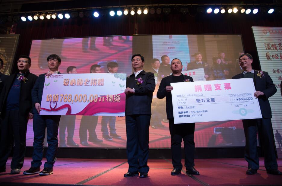 据了解,全家福国际集团是一家集健康养老、电子商务、科技创新、文化教育、生活服务等行业于一身的综合性产业集团,秉承为中老年人打造健康快乐的晚年生活的宗旨,全方位、全身心的为中老年人健康快乐的晚年生活提供最高品质的服务。自2013年成立以来,全家福国际集团就积极履行社会责任,已成功举办了多场慈善活动,并和中国老龄事业发展基金会合作,终身捐助数百位三无老人,捐赠数百亩公益林。在国家发生汶川地震、玉树地震的危难时刻,全家福国际集团也始终站在慈善事业的第一线,累计捐赠慈善基金高达上千万元。