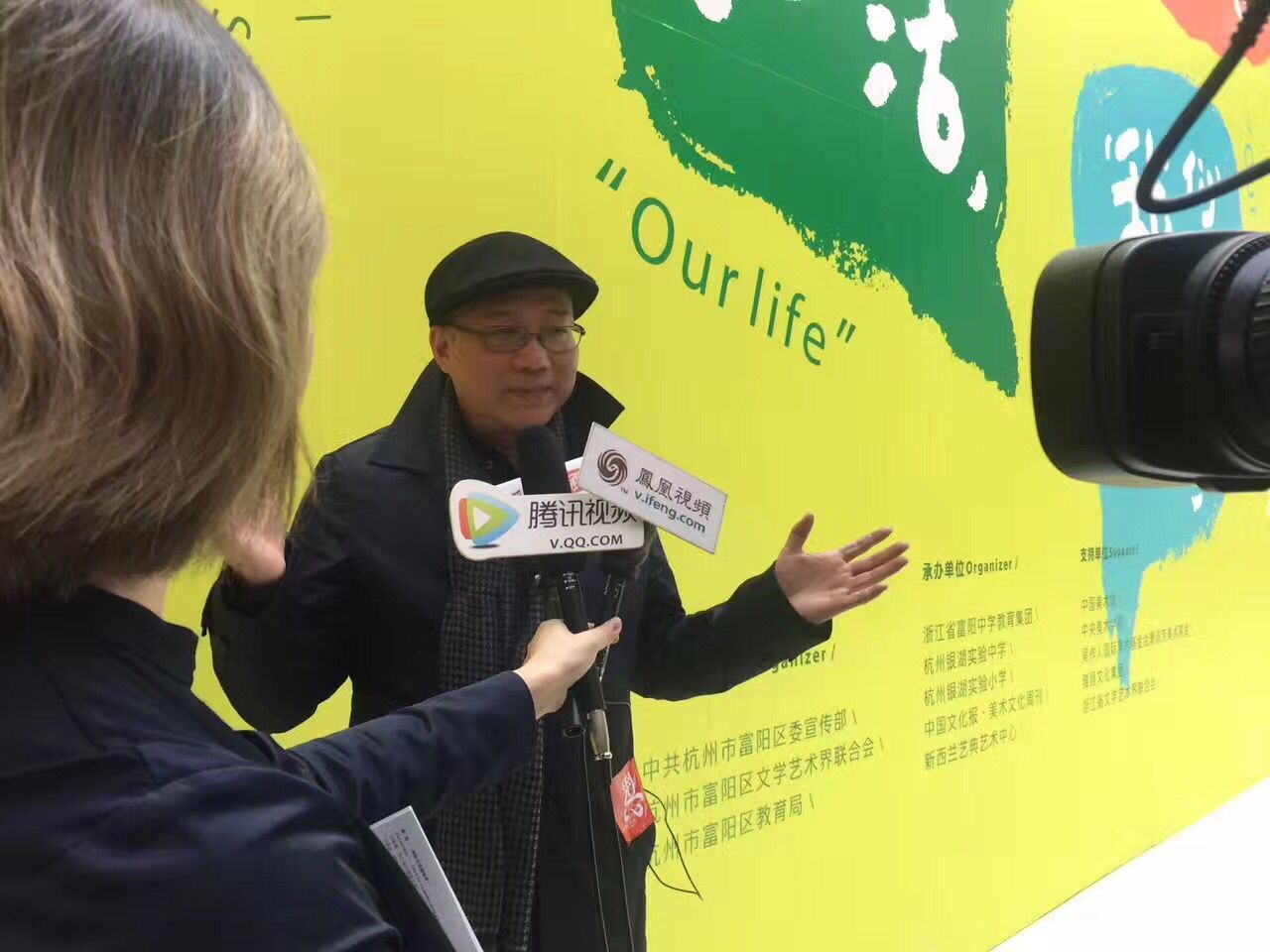 许江老师在展厅接受采访
