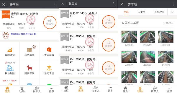 (养羊啦公众号) 养羊啦推出的互联网牧场联合养羊模式,是一种有趣有爱,生动活泼的互联网理财产品,用户只需要通过登陆养羊啦官网或关注养羊啦公众号,用1000元或6000元购买一只销售其上的山羊,客户购买成功后,通过养羊啦平台与线下牧场签署联合养殖协议,由线下牧场负责帮助客户饲养,合同到期后,由牧场回购产权,并分红,而且有机会定期前往线下牧场饲养基地与自己的羊儿亲密互动,不需要亲身参与饲养活动,却享有牧场主的尊荣。养羊啦在对外公告中,都会亲切地称呼这群线上养羊人为“主人”。