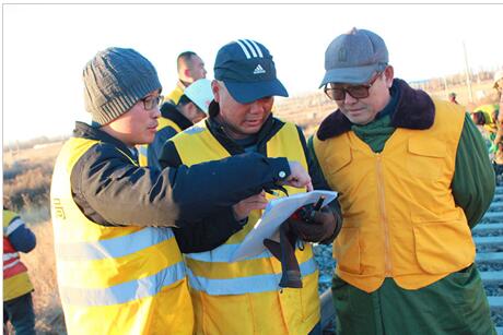 现场技术负责人常磊,与设备管理单位认真核对数据。 看到火车安全顺利通过,大家疲惫的身心得到片刻放松。 |