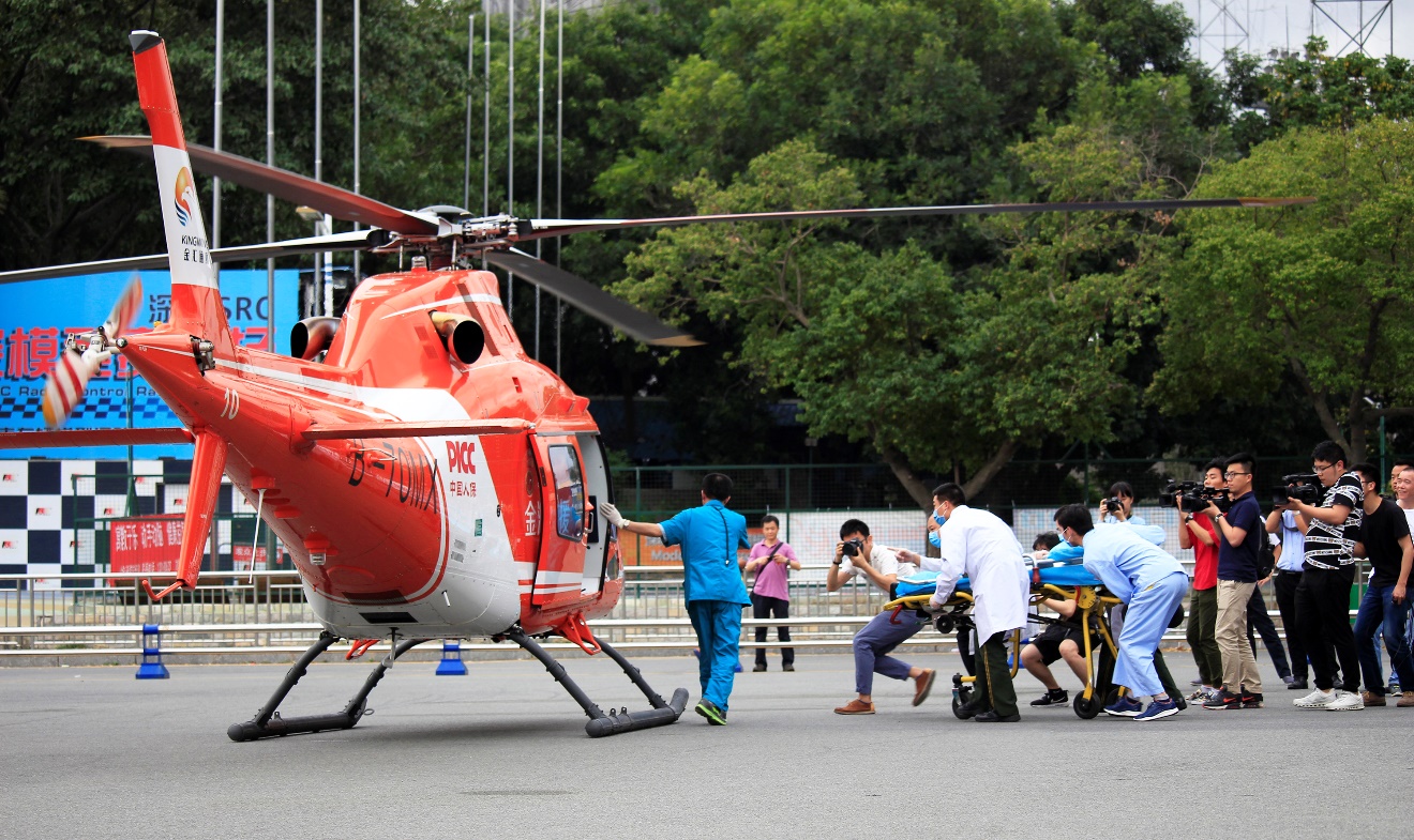 4月10日下午,伴随着螺旋桨急速的轰鸣声,经过340多公里的空中飞行,一辆救援直升机稳稳的降落在深圳体育场空地上,机上的脑梗重症病人随即被转移到在此等候的120救护车上,并送往深圳武警医院进行急救。这是深圳首起空中院前急救,也标志着深圳空中120正式拉开序幕。