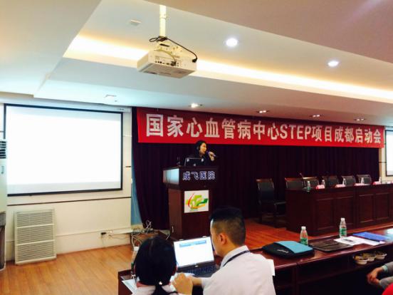 (张伟丽教授发表演讲) 在刚刚过去的四川大学华西医院及成飞医院的STEP项目启动会上,国家心血管病中心、中国医学科学院阜外医院、STEP项目研究的负责人之一张伟丽教授说到:“中国大约有2亿高血压患者,高血压不仅严重威胁着我国民众的健康,对国家和患者也会来带沉重的经济负担,控制高血压是防治心血管疾病的切入点。” “传统的高血压诊疗及随访模式需要患者主动到医院问诊,医生的随访工作也有很多不便之处,STEP研究通过移动互联网和智能手机APP及智能血压仪,患者在家就能上传血压数据,医生可以实时监测及调药,能够让患者真正地将血压控制在自己的手里,在慢病管理领域是一个巨大的创新。”