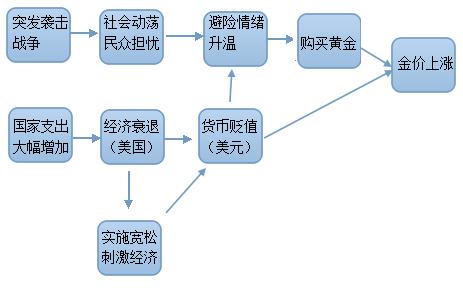 同时任衡还举例说明,911事件让当时美国民众担忧情绪蔓延,国际资本对对于美国市场的信心不足,催发了市场对黄金的避险需求升温,从而诱发了黄金价格瞬间飙升的态势。为了刺激当时低迷的经济,防止恐怖袭击带来衰退,美国连续17次降息,在长达两年多的时间里一直保持1%的低利率,持续实行宽松的货币政策,造成国际流通的美元过剩,美元从此踏入10年熊途,而黄金则成就了10年牛市,并在2008年首次开启四位数时代。