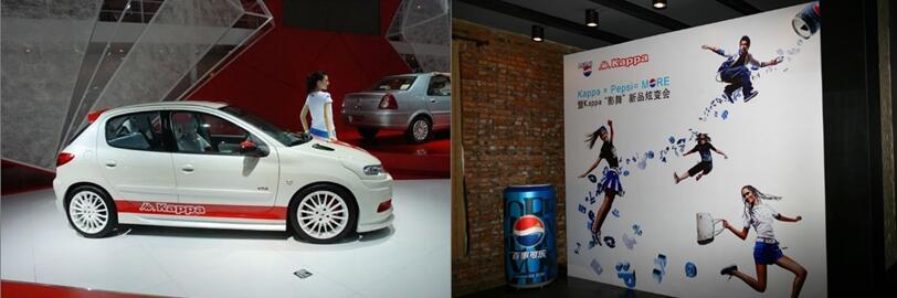 进驻中国15年期间Kappa的时尚潮流合作不胜枚举。2007年,Kappa与百事合作,将百事新包装的时尚元素融入运动服饰,设计并推出了Kappa—百事影舞运动产品系列;2008年,Kappa又与东风雪铁龙联合跨界,将一款带有独特Kappa风格的雪铁龙C2轿车带到北京国际汽车展。