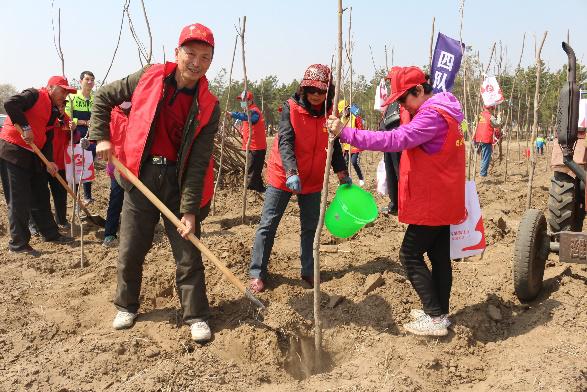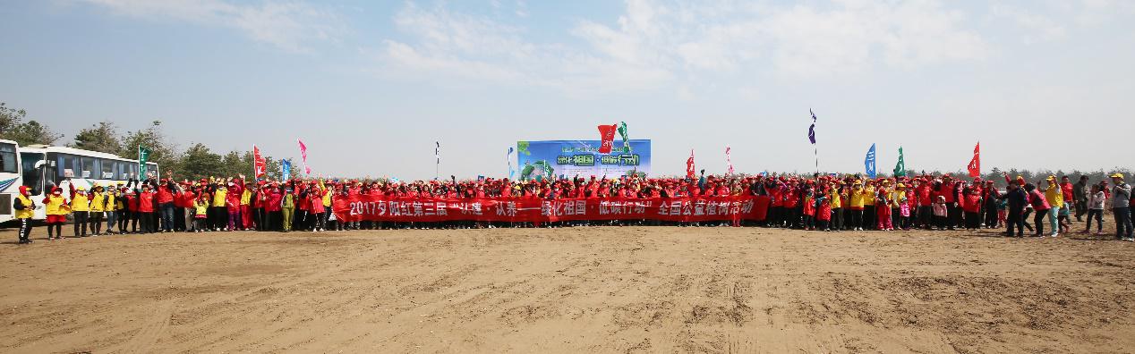 第三届2017夕阳红“认建·认养——绿化祖国·低碳行动”全国公益植树活动合影 此次植树地点位于三北防护林中,对阻挡内蒙古科尔沁沙漠地带的风沙南侵,起到了关键性的作用,对于防沙和守护首都具有重要意义,带树苗长大后将为绿化祖国,抗击沙尘暴再竖起一道绿色的丰碑。