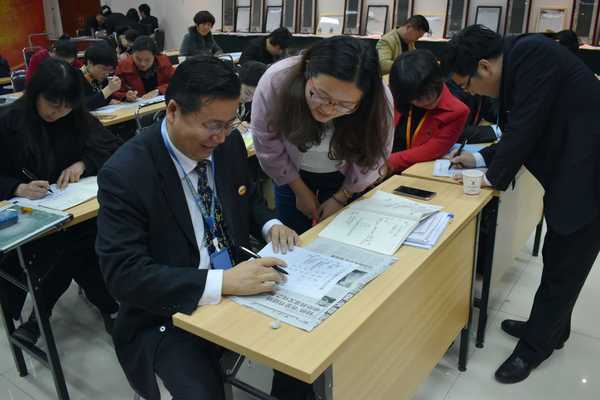 王恺教授在认真的给学员做指导 对于书法行业里出现的其他仿冒元宫格练字法的机构所带来的诋毁和攻击,元宫格创始人王恺教授表示:“中国的市场庞大,任何机构都无法只手遮天,对于现在的行业现状,就是需要在竞争中与优秀品牌互相借鉴、共同做大;当然,打击盗版与仿冒在必要时会采取法律手段来保护元宫格的权益,同时王恺教授表示打击盗版与仿冒最关键的点在于元宫格练字法的不断升级与创新‘’! 元宫格练字法一路走来,高级教师研修班从第一届研修班到现在第八届,培训全国优秀书法教师超过1000名,从普通的单一培训模式至第八届跨越式迈向了品牌化的模式,元宫格有了新的理念和新的目标;对此王恺教授对广大教师团队的寄语:希望大家在练好字及教好学生的同时,能够深刻体会中国传统文化的博大精深,增强民族自豪感和自信心!