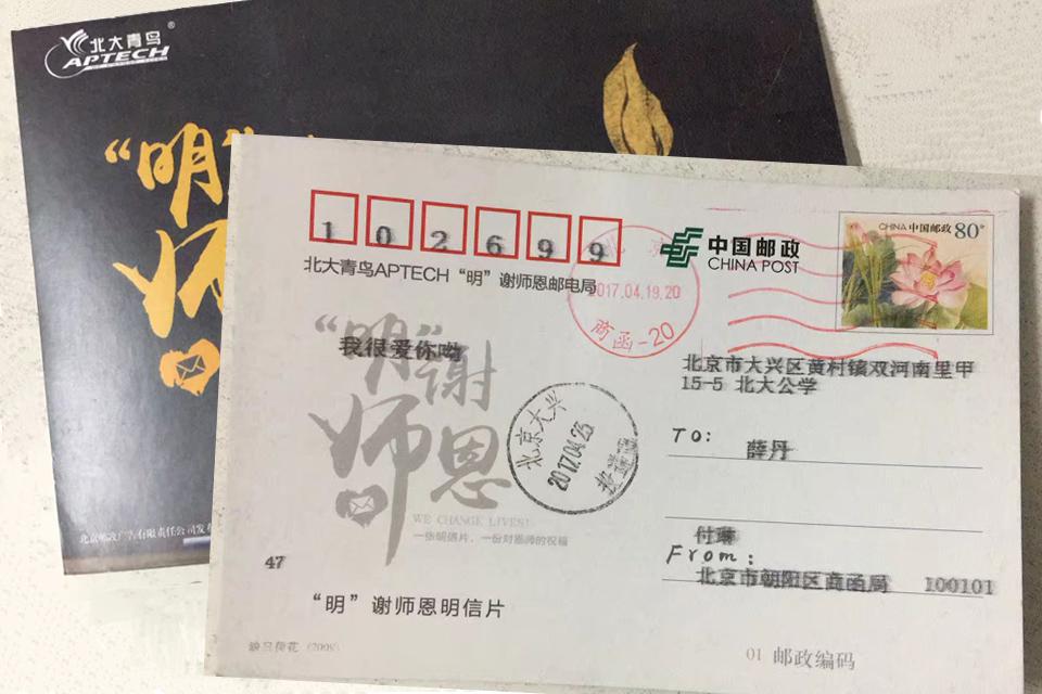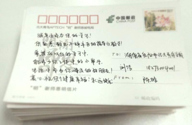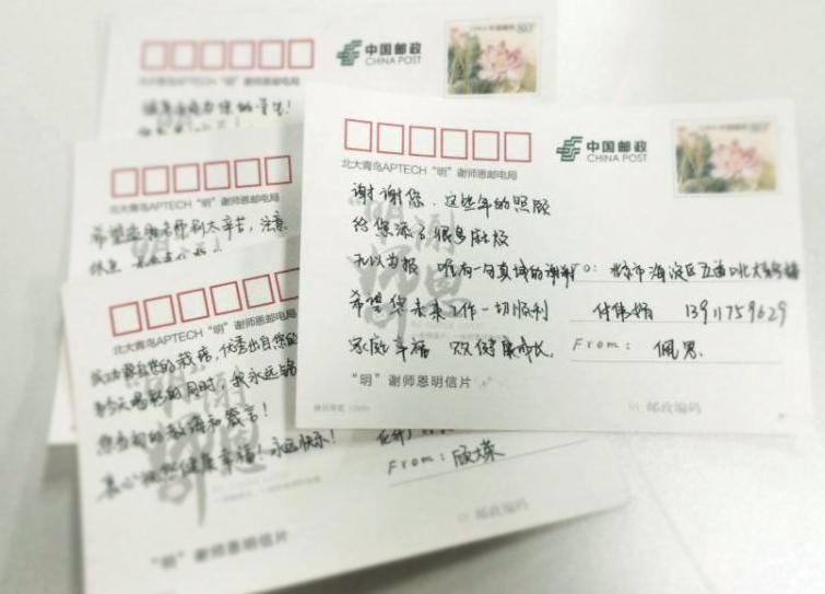 敬爱的老师,您的明信片已成功寄出,请注意查收! 来自北大青鸟APTECH“明”谢师恩邮电局的最新消息,笔墨心意,千里传情。在广大莘莘学子的热烈响应下,“明”谢师恩活动收官不久,一张张明信片皆已成功寄出,有一些已搭乘爱的邮政车,送到了老师们的手中,带去了学子们深切的祝福和真挚的感恩话语。虽然只有短短的几句话,但是浓缩了校园时光里最美的师恩情深,温暖了老师的心。