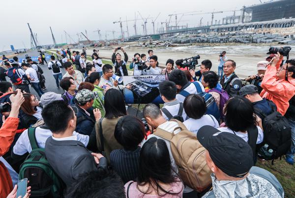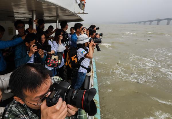 启动仪式结束后,主办方特意安排摄影爱好者乘坐游轮到海上拍摄港珠澳大桥雄姿,以更广阔和全面的视野领略这一世纪工程的风采,摄影爱好者们对其赞叹不已:“确实伟大,总是在媒体上看到说港珠澳大桥多么壮观,离近了才知道它有多震撼。”