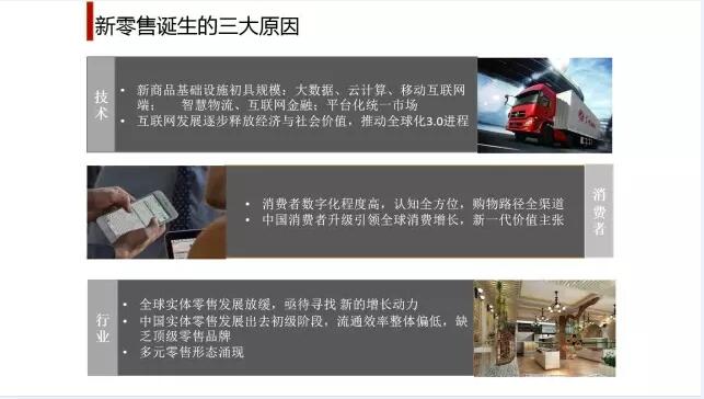 下面会分享杨勋忠先生讲话的重要内容,首先,杨勋忠先生结合中国品牌发展历程,提出“世界知名品牌全面进入中国市场的同时,中国民族品牌也迈开了“走出去”的步伐,国际品牌和国内品牌的正面竞争拉开序幕”。 分析了从21世纪开端至今互联网的发展情况,指出从2016年之后,销售行业的发展方向开始从线上到线下融合,从原本的以货为中心到以人和内容为中心的过渡。 杨勋忠先生指出,随着互联网、智能手机普及,全球定位技术,新基础设施完善,消费方式将逆向引领生产及技术变革。 关于新零售诞生的三大原因,杨勋忠先生从三个角度上进行了分析,首先,从技术的角度出发,提出新商品基础设施初具规模,大数据、云计算、移动互联网端迅速发展。而且,智慧物流、互联网金融的发展与平台化统一市场的形成也是重要原因。 同时,互联网发展逐步释放经济与社会价值,推动全球化3.0进程。另外,从消费者的角度上出发,消费者的数字化程度高,认知全方位,购物路径全渠道,同时中国消费者升级引领全球消费增长,新一代价值主张形成也是重要原因之一。 最后从行业的层面上来说,全球实体零售发展放缓,亟待寻找新的增长动力;而且中国实体零售发展处于初级阶段,流通效率整体偏低,缺乏顶级零售品牌,与此同时,多元零售形态快速涌现。