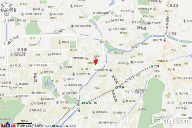周边配套图 项目周边商业配套多集中在盛龙路上,往西1公里内有万象天成商业区,超市、药店等日常生活配套齐全。在万象天成与项目之间,林立着各种各项的饭店、餐馆,以及酒店等等。 项目距离龙城广场和龙岗区政府不到2公里,龙城广场附近聚集了龙岗区不少市政配套,如图书馆等,另外,龙城广场周边商业mall也比较齐全,如万科购物中心,世贸百货等,都在运营之中。 交通:紧靠公交站 地铁距离稍远 项目步行500米之内的公交站点有4个,其中,盛平村委站就在项目一期门口,经过路线共有5条,其中1条可直达南联站,两条直达大运站。 在地铁站方面,南联站距离项目约1公里,但是因为目前二期在建,一二期之间规划的市政路,以及规划的横跨龙岗河的小桥尚未竣工,因此,目前步行花费时间更长。