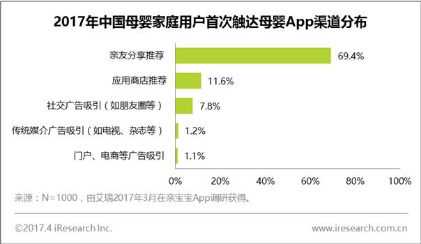 在母婴家庭用户群体中,接近70%的母婴家庭人群通过亲友口碑传播接触并使用母婴App。此外,通过应用商店推荐和社交广告吸引而接触母婴App的用户也分别达到11.6%和7.8%。口碑传播是大部分母婴家庭人群接触母婴App的途径。