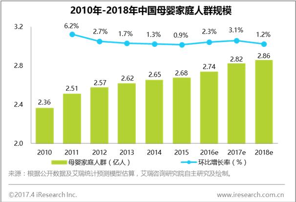 伴随着育儿理念和消费理念升级,中国母婴家庭的家庭决策出现结构性变化。除了主力妈妈外,爸爸和祖辈也参与到孩子在成长过程中所涉及的衣食住行等各方面的决策,并起到越来越重要的作用。 4月18日,艾瑞联合亲宝宝发布首份国内母婴家庭人群报告——《2017年中国母婴家庭人群白皮书》。该报告通过梳理母婴家庭人群的消费理念、广告态度和生活观念等各方面特征,洞察各家庭成员在育儿过程中差异化的态度和表现。 2018年母婴家庭群体规模将达2.86亿,母婴市场潜力巨大 “全面二孩”政策开放,加上中国第三次婴儿潮人群(1986-1992年出生)已进入生育高峰期,受中国人对金猪宝宝的偏爱影响,生育需求将进一步释放。 艾瑞咨询认为,预计到2018年年末,中国母婴家庭群体规模将达到2.86亿,与2010年相比,增长21.2%。伴随着家庭决策结构的不断优化,和母婴家庭人群迅速扩张,母婴市场潜力巨大。