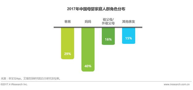 亲宝宝创始人冯培华从2013年就瞄准母婴家庭市场,对市场前景很看好:“母婴家庭人群市场增量很快,国内4+2+1或者之后4+2+2的家庭形态是主流,围绕孩子和家庭的成长衍生的需求,服务好这一批人,有更大的想象空间。” 冯培华创办的亲宝宝App于2013年上线,主要为中国年轻家庭提供家人亲友私密共享云空间,记录、共享家庭与孩子的成长历程,帮助连接所有亲友零距离关爱孩子成长。目前已拥有4200多万的注册用户,用户家庭超千万。 移动化趋势成主流,以妈妈为主的育儿格局转变 艾瑞数据显示,国内网民的移动端使用时长已经占据整体上网时长的88.2%。在母婴家庭人群中,移动化也成为主流趋势。2017年2月,母婴类App的月独立设备数达到7468.5万,同比去年涨幅超过70%。其中,作为母婴行业头部代表App之一的亲宝宝,月独立设备数达到了1051.3万。 移动互联网的发展正在逐渐改变家庭的传统分工,原本以妈妈为主的育儿格局开始得到转变。 “亲宝宝的发展,其实也见证了这几年中国家庭在育儿过程中,爸爸和祖辈力量的崛起。”冯培华表示,“从刚上线的时候,记录主体以妈妈为主,到现在,爸爸、祖父母外祖父母比例明显增加,在我们平台,妈妈用户占比只有40%,爸爸有29%,祖父母/外祖父母占比16%。”