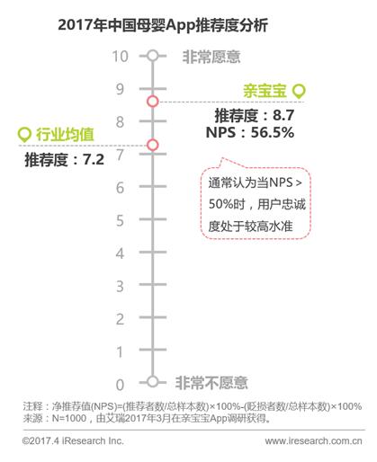 “未来,行业头部App的聚焦效应将会更加显著,用户将集中流向向口碑和综合使用体验更好的产品。”艾瑞分析师艾欣认为。根据调研结果显示,以亲宝宝为例,其整体用户推荐度达到8.7,显著高于行业平均水平。