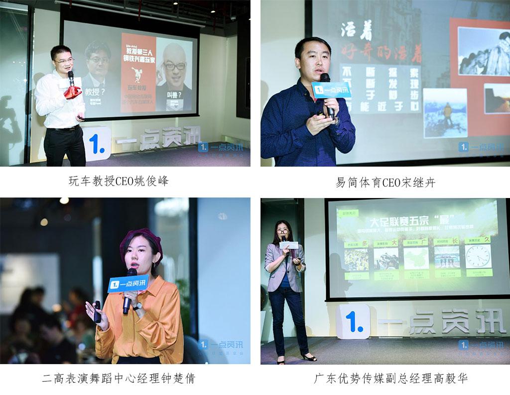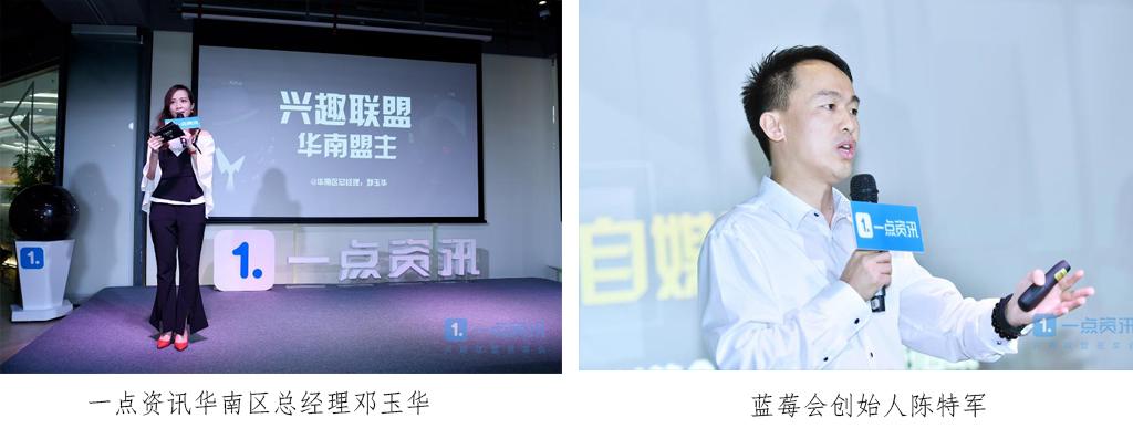 作为兴趣合伙人之一的蓝莓会创始人陈特军也在《以兴趣为媒介,把握自媒体+大风向标》主题演讲中表示,目前自媒体呈现出内容垂直化、运营数据化、自媒体团队化、传播碎片化、平台集中化、多屏分群化、企业融合化、品牌IP化、粉丝社群化和媒体生态化在内的十大发展态势,他还逐一分析了自媒体所蕴含的营销价值,其鞭辟入里的洞察为品牌主选择自媒体进行兴趣内容营销提供了极具价值的参考。 其实打造兴趣联盟,一点资讯具有得天独厚的资源优势,尤其兴趣引擎所具有的任意关键字搜索订阅为频道功能。目前一点资讯已拥有365万+个性化兴趣频道,并具有15万家自媒体入驻,这俨然就是365万个自带流量的兴趣培养基。 为此,一点资讯致力于成为移动互联网最大的兴趣孵化平台,并通过内容营销方式,挖掘巨大的兴趣商业价值。据悉,2017年一点资讯与华南众多营销人共同打造的兴趣联盟,将通过5场垂直沙龙、50个线上分享、5场企业探访、4份兴趣报告及1场联盟盛典持续推进前沿营销观点分享,并进行优质资源互利共享,让“兴趣”充分发挥营销价值,流光溢彩。 四大阵营合伙人携六大项目共话兴趣价值营销之道 除了邓玉华与陈特军的干货分享之外,兴趣联盟中“有趣、有料、有用、有品”四大阵营合伙人也轮番登场,通过生动有趣的项目介绍,传递最前沿的兴趣营销内容与创意观点,多元的新鲜思想碰撞,为众华南营销人呈现一场思维视听盛宴。