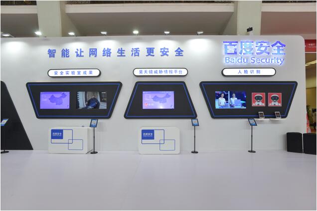 此次展台的主要功能区互动体验区展出的核心智能技术,包括可实时汇集安全威胁情报收集、抵抗黑客攻击,网络漏洞扫面等诸多安全能力和数据的打黑监控地图;能对用户提供银行级隐私保护的人工智能技术和安全能力结合产品小鱼在家,互联网安全决策引擎、百度安全实验室三大安全平台之一昊天镜威胁平台,以及在宝贝回家项目中发挥重要作用的人脸识别闸机等顶尖智能安全技术。