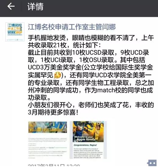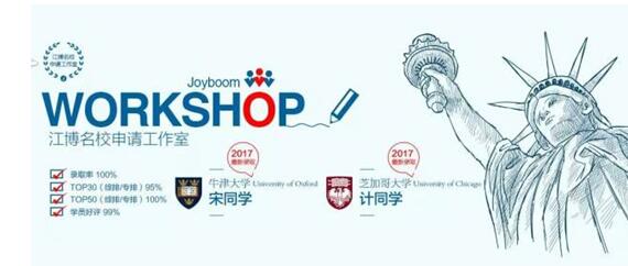在本次分享会上,江博教育总裁江博先生将亲临现场,为广大的家长和学员分享2017出国留学走向,藤校Captian/众神之神Oscar也将倾情分享 2017江博学员名校录取破纪录秘密。作为本次分享会的重点嘉宾,芝加哥、西北、多伦多、威廉玛丽、波士顿学院、顶尖艺术院校等名校录取学员也会分享自己的学习申请经验,这势必会成为本次分享会的一大亮点。除此之外,只要参加此次分享会的学员和家长都享有免费的留学申请咨询及现场规划服务,而且到场即有惊喜,现场签约即享申请服务费用巨额优惠。 江博教育取得的一切成就,都离不开其多年的坚持与努力。众所周知,江博教育由著名英语教育专家江博老师创立于2004年,经过14年的发展,江博教育已发展成为国内首家从小学到高中再到留学的一站式英语教学、服务基地。凭借多年的行业积累,江博名校申请工作室在每年的留学申请中都能取得优异的成绩,这也吸引了同行的关注,更赢得了众多家长和学员的亲睐。 2017年前后,江博留学工作室就先后得到喜报,共有200多名学员被哈佛、斯坦福、哥大、芝大、牛津等顶级牛校所录取。比如签约学员宋同学被牛津大学录取,而且还是被牛津大学最牛的PPE专业录取的!还有谢同学,被密西根安娜堡大学所录取,就是这样高冷的“Defer王校”,照样被江博教育的学员所拿下。在申请加州的17.1万学员中,江博教育更成功地拿到了20个录取名额。每枚录取的背后都藏着一个曲折的故事,每所学校的魅力都远超冰冷的U.S. News 排名,喜欢的才是好的,适合的才是最好的。