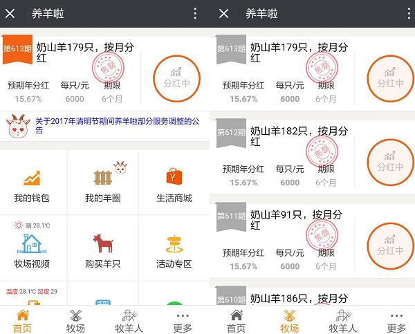 据记者了解,养羊啦互联网牧场是由建水县鸿辉种养殖产业有限公司推出的互联网联合养殖项目(公众号:养羊啦),鸿辉公司来头不小,所获得的荣誉和资质极多,几乎挂满了公司的整个荣誉墙。从记者从网上收集的材料来看,公司获得的荣誉和资质包括云南省农业产业化龙头企业、红河州农业产业化龙头企业,云南省农业科技示范园、肉羊标准化典型示范场、国家良种补贴(种公羊)定点供种场、世界奶山羊样板示范养殖场、世界羊乳加工样板工厂、世界羊乳制品金奖、建水县石漠化综合治理草地建设项目实施点、红河州农业学校专家工作站、云南农业大学实践教学基地等,公司的所获得荣誉资质不仅多,而且分布平均,不仅横跨产、学、研多个领域。而且贯穿农工商,鸿辉公司2009年成立,以山羊养殖发家,2014年开始酝酿转型山羊产业链,具体以山羊养殖为基础、以山羊乳制品为核心产品,以线上联合养殖和销售为渠道,在整个山羊产业链中发挥互联网+在农业领域的重要作用和影响。养羊啦互联网牧场正是公司互联网+农业的重要成果,去年末,公司的乳制品厂连续通过了乳制品GMP认证、HACCP认证和质量管理体系认证,为自己的履历又增添了闪亮的一笔。 养羊啦互联网牧场2015年8月上线,目前的用户量排在业界第一位。据鸿辉公司养羊啦团队总监林先生告诉记者,养羊啦互联网牧场兴起及兴盛得益于几个因素:“当然,首先还是顶层的,互联网牧场就是最近几年才出现的,这种新生事物的出现离不开国家的互联网+战略,以及一系列支农惠农政策,第二点,就是技术层面的,互联网和信息化突飞猛进,互联网虽然是第三产业,但是如果企业没有进行通盘的信息化改造,肯定玩不转,另外就是我们鸿辉自己的业务实力,我们山羊养殖经验、养殖规模、养殖技术,而且我们产业完整,种植、养殖、加工都有深入涉及,另外还有一点是你们媒体没有提到过的,那就是地域优势,因为总公司所在的云南有得天独厚的优势,是山羊生长的天堂,这里有全国数一数二的黄金奶源地” 据记者了解,公司有山羊数量9万只,72个标准化养殖场,1个可以容纳10万只的养殖园区养殖场。养羊啦互联网牧场商业模式则是这样的,客户通过养羊啦平台购买鸿辉公司的山羊,目前养羊啦平台上山羊产品为奶山羊,一只6000元,年化收益15.67%,联养周期6个月,客户成功购买山羊后,与公司签署联合养殖合同,山羊由鸿辉公司在位于云南建水的自己的专业牧场替客户进行饲养,联合养殖期间,山羊产权归客户所有,合同到期后,公司进行分红,养羊啦平台上的山羊客户购买成功后,就会收到该山羊的一系列信息,例如耳号、合同、保单等,并且这些信息之间是有对应关系的,保证一羊多卖的情况不会发生,如果客户购买的山羊在饲养过程中发生死亡,保险公司会进行赔付,据记者了解,鸿辉公司的线下牧场都装上了萤石的C3C壁挂式摄像机,借助C3C摄像机30米的大范围夜视覆盖,实现24小时高清实时直播,这是鸿辉公司与著名上市公司海康威视进行合作的一部分。海康威视会根据鸿辉公司的业务实际情况和需求提供全方位、定制的可视化解决方案。 在养羊啦互联网牧场这种商业模式中,客户深入地参与到公司的山羊产业生态圈中,客户不仅能够通过投资资金参与线下养殖,而且可以为山羊定制食谱,我们知道公司的山羊产业链是一个整体,奶山羊负责产山羊生鲜乳,生鲜乳半小时内就会进入全程冷链,然后在两小时内,生鲜乳就会被送达公司的乳制品厂进行加工,所以客户为山羊定制的食谱必然能够化为特色的羊奶,最后这些羊奶会回馈消费者。从而在产业链中完成了一个C2B定制过程。