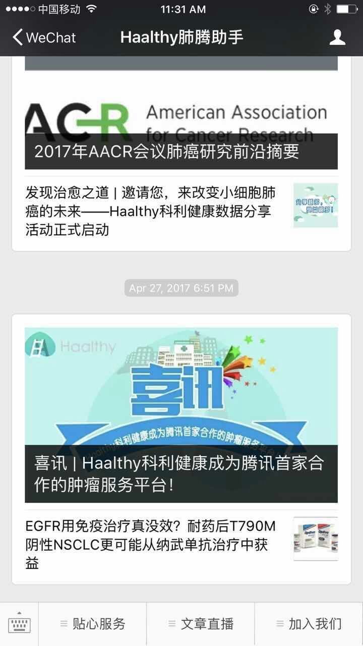 Haalthy所做的一切均是“以患者获益最大”为中心,接下来,邱威妮和她的全球团队还将展开一系列的动作,给更多的癌症患者及其家庭带去福音。 通过平台找服务的患者已经节省了30%的医疗相关支出; 短短的一年时间内,Haalthy科利健康不仅仅获得了多位国内外肿瘤专家(如:北京协和医院、上海肺科医院、广东省人民医院、哈佛医学院、MD Anderson)的认可和支持,而且还成为了腾讯旗下的腾爱医生首家合作的肿瘤服务平台 |