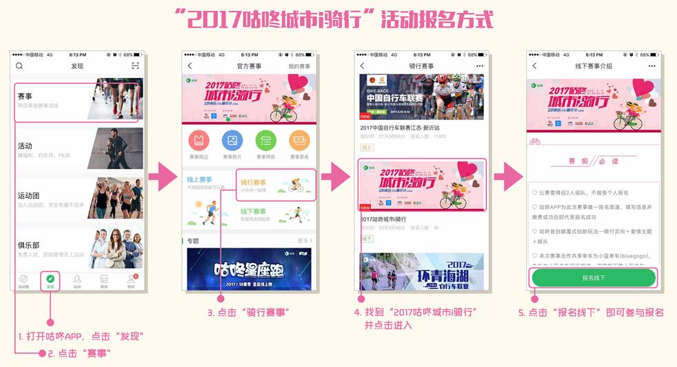 本次活动仅限260对情侣选手,咕咚APP为此次赛事唯一报名渠道。如果你想和另一半体验浪漫的回忆,共度难忘的520,感受这份纯真又美好的爱恋,那就打开咕咚APP,报名参加吧,千元参赛礼包立即送,万元大奖等你拿。 报名路径,请参照以下示例: