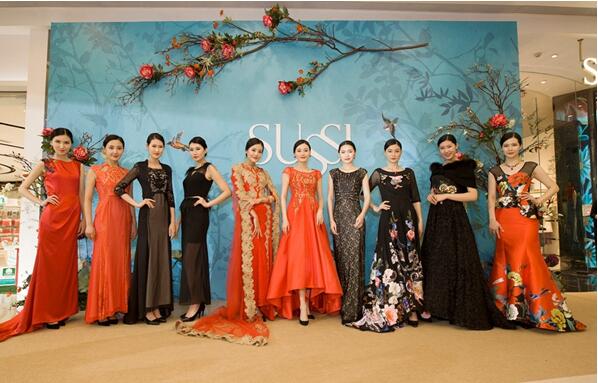 著名主持人孙琳以SUSSI"点梅寿阳"礼服助阵大秀,点梅花飘落的瞬间成裳,定格永恒的美好。 15个美好人文故事 复刻经典 秉承传承东西方美好人文,延续品牌之夜带来的心灵感悟,SUSSI在商场1至4层设立15个展区,复刻经典,以SUSSI礼服为载体,讲述东西方15个美好人文故事,让观众如临其境穿越不同时代、地域、文化,在这过程中体验和传承智慧美学,带给观众对美好人文思想的感悟和启发。