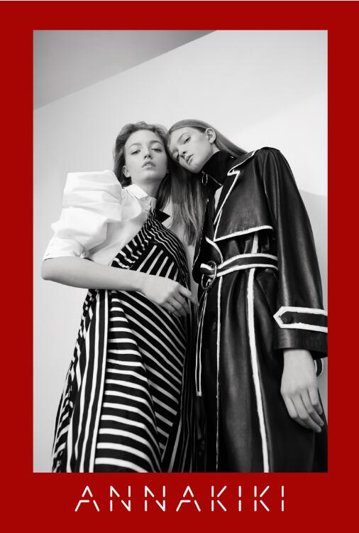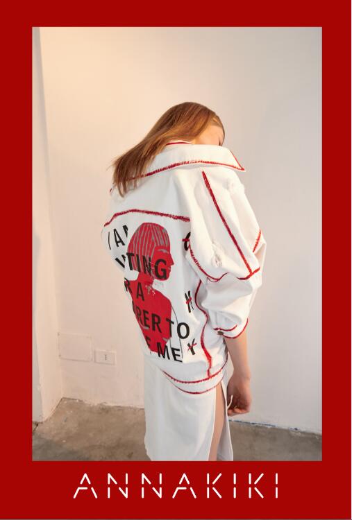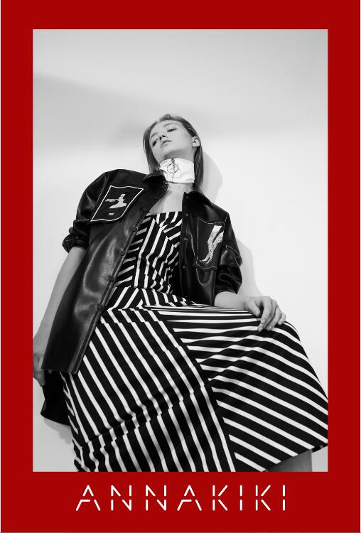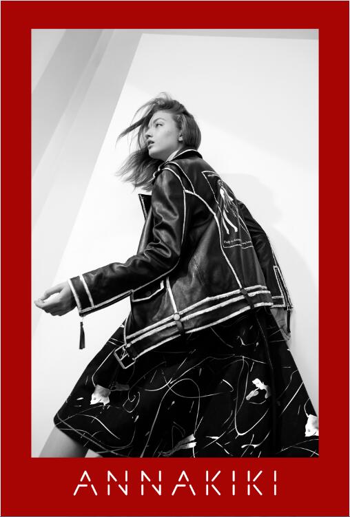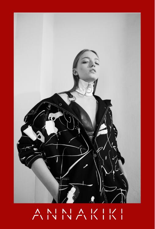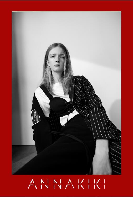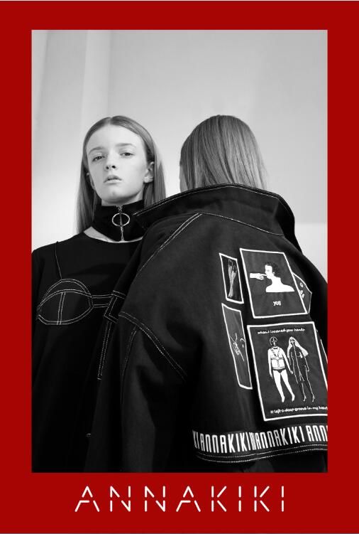 ANNAKIKI 2017春夏系列以“Teddy Girl”为切入点,在设计上引用英插画师kayeblegvad的插画,她的作品大多强调人像或身体局部形态,通过这种略夸张手法强调和关注自我表达和发声,而这些图案以手绘、刺绣等工艺自然融入时装,在视觉上以黑白灰纯粹色系营造电影胶片的腔调复古和时空幻变的景象。