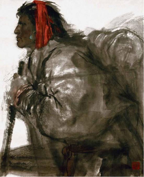 《六月六》 《高原之子 笔墨之魂》 马西光先生是一位才华横溢且具有独立学术品格的画家,他和他的高原人物画享誉画坛。 这位在青海生活了四十余年的画家,如孺子牛般耕耘于艺术的热土里,一方面,他扎根于泥土,道法自然;另一方面,他致力于挣脱造型对笔墨自身价值体现的束缚,作品颇有些不墨守成规的气息,其笔情墨趣,精到传神,豪迈画境,飞扬洒脱,诗意动人。无论在题材还是技法表现上, 我们都看到了一个勤勉的,且富有独立思考精神的马西光。 马先生的创作以一种东方式的美学原则和文化精神为主导,同时吸取了西方绘画的元素,在艺术观念、技巧、形式语言的运用上不流于俗,有着自己的想法。他把原始洞穴壁画,汉代画像和古代雕刻中的造型方法融会于自己的造型之中,又把泼墨、拓印与勾线相结合,他所开创的这种“拓墨皴法”,拓宽了传统的绘画语言。在遵循笔墨规律的前提下,马先生随心所欲不逾矩,尽情释放着自己的家园情怀,形成了创作意识的自由。