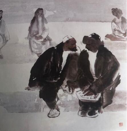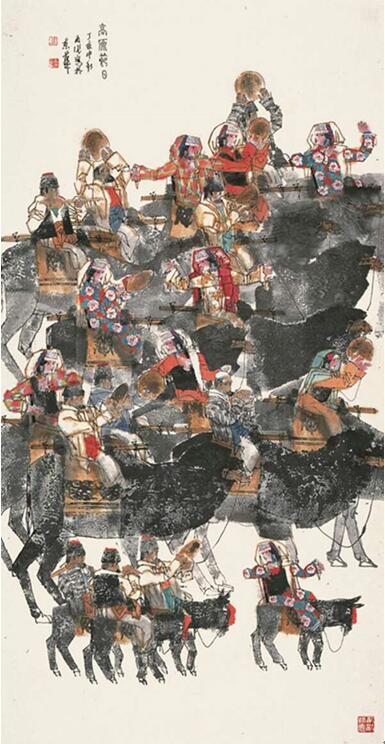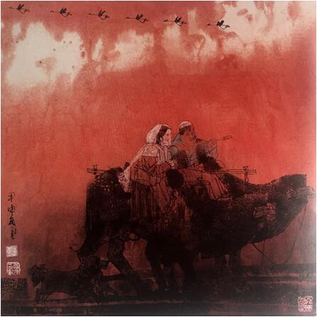 《广场冬日》 68×68cm 在他的笔下,人与动物和谐交融,体现出天人合一的精神,西北高原特有的人情风物、牦牛、骆驼、驴马等形象,充满了生命的力量。冼练的笔墨将人物的神采,牦牛的运动感,牦牛强悍不羁的气质捕捉得生动淋漓,生活场景富于形式美感。既有民族意蕴又有现代意识的作品,是心灵与自然相感悟的写照,体现卓越不凡的生命气象。 他的西北豪迈而富有诗意,他的高原奔放得动人心扉,可以想见,如果没有一颗同样灿烂、豁达、爽朗、明净的大气魄,是无法绘出那样的生命画卷。 心神高远则笔墨深厚,心境旷达则画境高迈,他以扎实沉稳,豪迈洒脱的心态怀抱世界;以自己来自生活的由衷感受为基础进行艺术处理;以洞察宇宙生命的独到眼光开掘笔墨语言的深度和广度,这是一种个人的艺术感知与创造性的表现;是一种独特气质与内在学养的流露。