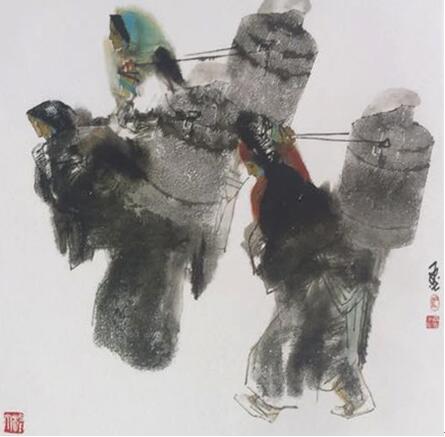 《晨雨》 68×68cm 1989年 风格即人格,其纯粹的作品一如马西光先生本人的性格。他从来不会迎合世俗,浮于表面,而总能勤勤恳恳,扎扎实实地进入艺术规律去创作,他的作品里没有太多的烟火之气。西北高原的苍茫、博大,那种雄浑、坚韧的生命气息,给了马西光艺术上的启示,他更关注灵性、思想,坚信“胸中无尘?,下笔如有神”、“法无定法”等本质特征,开拓出自己的绘画面貌。于豪迈大气之中让人感受到一种诗意动人的笔墨意趣。这种风格的呈现,是经过了繁复的艰苦探索中的一种回归,透过他的作品可以让我们若有所思:真正个人风格的建立,绝不仅仅局限于画面的形式技巧和图式语言,风格的建立具有一种不确定性,这种不确定性正是艺术家艺术探索过程中最微妙、最感人,最吸引艺术家不断深究的一个魅力所在,所谓“生命不止,艺术风格的探索不止”。而这,也是先生作品中所呈现出的一种气质。豁达超逸的笔墨性情,可见他对现今生状态的感悟,无法掩藏地流露出生灵般的脉动和大手笔的艺术风范。