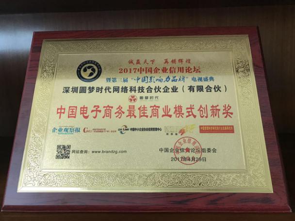 圆梦时代被授予“中国电子商务最佳商业模式创新奖” 圆梦时代董事长武海永荣获“中国经济新模式十大创新人物” 深圳圆梦时代作为一家创新型的移动互联网+商城+公益+教育的爱心平台,一直努力践行社会主义核心价值观,把诚信建设摆在突出位置。顺应国家“中国梦、双创、共享经济、一路一带、精准扶贫”等多项发展战略,圆梦时代4月26日在深圳隆重举办了“2017中国新分享经济首届创富论坛暨圆梦时代创客大学启动发布会”,参会代表共同探讨经济“新常态”下企业应当如何笃诚守信、如何进行诚信建设等问题,圆梦时代与众多合作企业携手以大力推进诚信体系建设为主线,全面创新商业模式,创造透明、开放、安全、高效的市场环境,从而提升企业软实力和国际影响力。