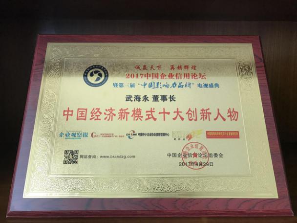 圆梦时代董事长武海永荣获“中国经济新模式十大创新人物”