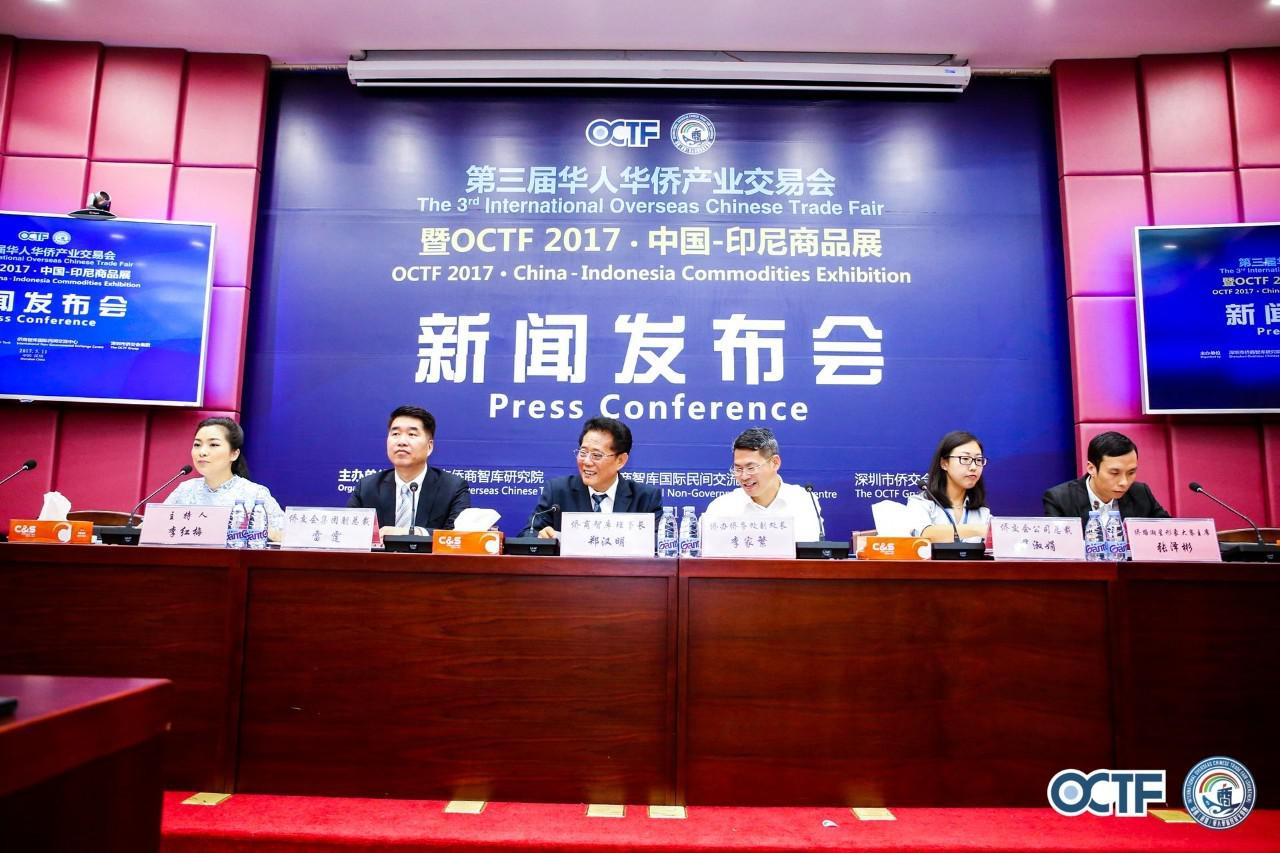 导语 5月11日下午,第三届华人华侨产业交易会暨OCTF2017﹒中国—印尼商品展新闻发布会在侨商智库召开,来自全球30多个国家和地区的侨领、海内外华文媒体代表共130多人出席活动。新闻发布会上,深圳市侨商智库研究院、深圳市侨交会集团、深圳侨交会投资管理有限公司相关负责人就本届侨交会招展工作及新点、亮点、特点回答了记者提问。