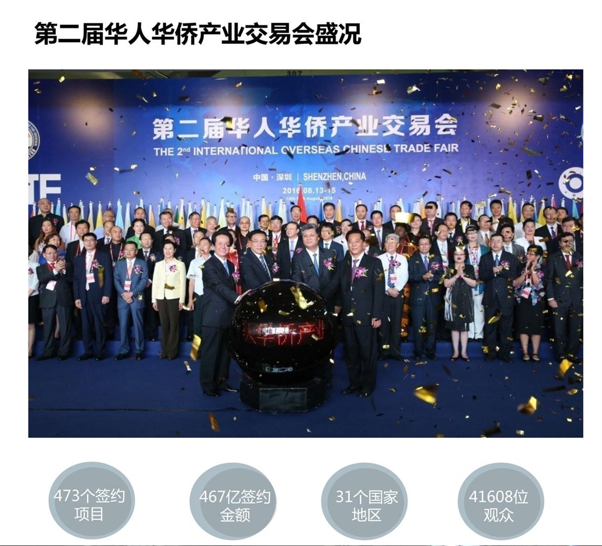 2017第三届华人华侨产业交易会(简称“侨交会”)将于今年8月13日至15日在深圳会展中心举行。 侨交会由侨商智库发起,200多家海内外社团、商协会共同主协办,深圳市侨交会投资管理有限公司承办,已在深圳成功举办两届。侨交会开创了我国进出口贸易侨商带动模式,充分打通了全球侨商网络,得到了国家、省、市级侨办侨联的大力支持。