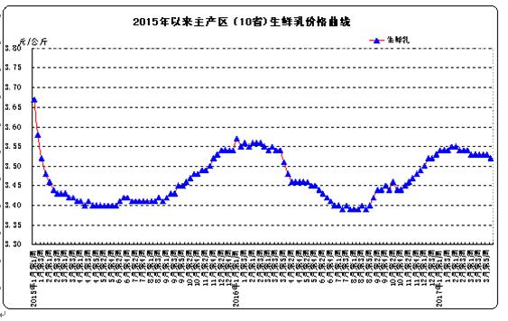 从上表可以看到,在A股创业板上市的西部牧业和港股上市的现代牧业虽然营业收入有小幅增长,但由于生鲜乳价格持续下滑,净利润均出现了300%以上的负增长;新三板公司骏华农牧更是出现了营业收入和净利润双双下滑的局面。相比之下,新三板企业上陵牧业的业绩表现则相对坚挺,不仅营业收入大幅上升了49.02%,净利润也同比增长了13.02%,成为全行业极少数能够保持利润同比增长的企业之一。 尽管如此,2016年生鲜乳市场整体不景气对上陵牧业的影响也还是非常显著的,受生鲜乳价格下跌影响,公司的毛利率从2015年的31.26%下降到了2016年的20.88%,这一因素也成为公司净利润增速大幅低于营业收入增速的主因。 艰难期已过,新一轮上市周期正在到来 经历了近三年的寒冬后,国内奶牛养殖产业正在缓慢复苏,有望迎来新一轮上升周期。奶牛养殖是一个典型的周期性行业,根据往年经验,奶牛养殖行业一般以三年为一个周期,在经历2014年-2016年近3年的下降周期后,整个行业有望在2017年进入新一轮上升周期。实际上,生鲜乳市场在2016年3季度就出现了止跌回升的迹象,生鲜乳价格从2016年 7、 8 月份最低点3.39 元/公斤稳步回升到了目前的 3.55元/公斤左右。 图1:2015年以来主产区(10省)生鲜乳价格曲线